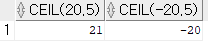 SELECT CEIL(20.5), CEIL(-20.5) FROM dual;