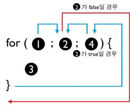 2번 조건식에는 반드시 true / false 값만 올 수 있으며 true인경우 루프를 반복 수행한다.