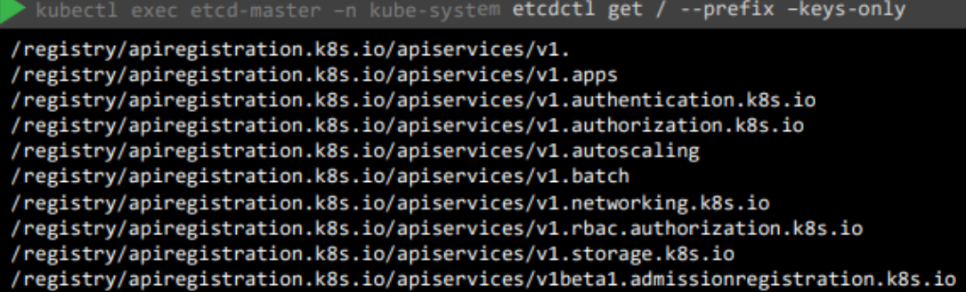 - node,pod,config,secret,account,role,binding 등의 정보를 담고 있다.